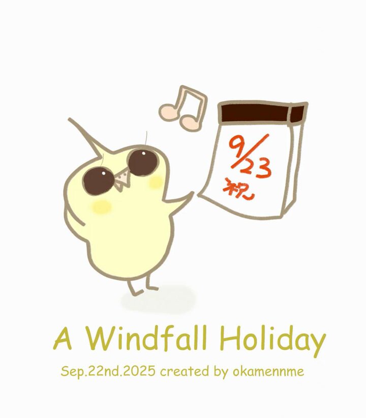 「おやおやこんなところに祝日が…まさに棚ぼただわ。秋分の日だけに…!」