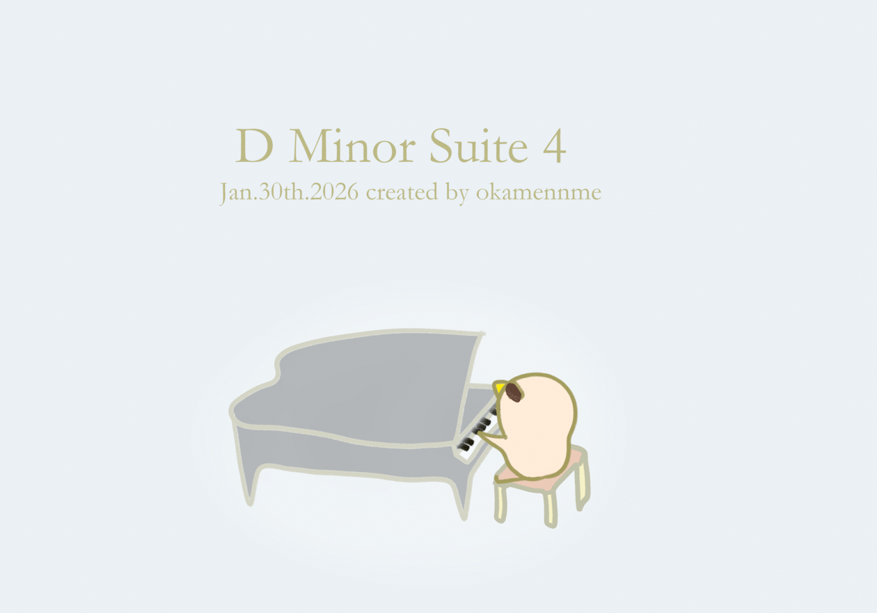 D Minor Suite 4 らくがき X Facebook はてブ Pocket LINE コピー 2026.01.30 ニ短調組曲シリーズその4コンセプトは、ニ短調が入ってるかもしれない鍵盤曲ですイラストは、目をつむって静かにピアノを弾くピンクのインコさんですバロックな雰囲気を目指してチェレスタソロに作りました良かったら聞いてみて下さい🐥🎹 ピアノの色が薄いグレーになってきています Xやpixiv、Instagram,Youtubeでも見られます♬ ■ SNSX:Instagram:pixiv:YouTube: \ 最新情報をチェック /