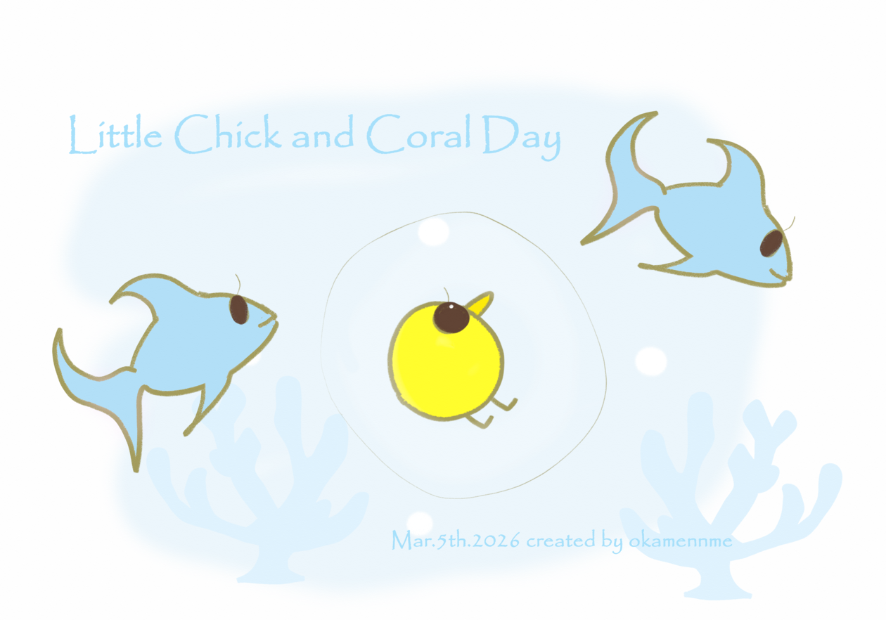 The illustration shows a little chick taking refuge in a coral sea because the pollen is making things miserable.