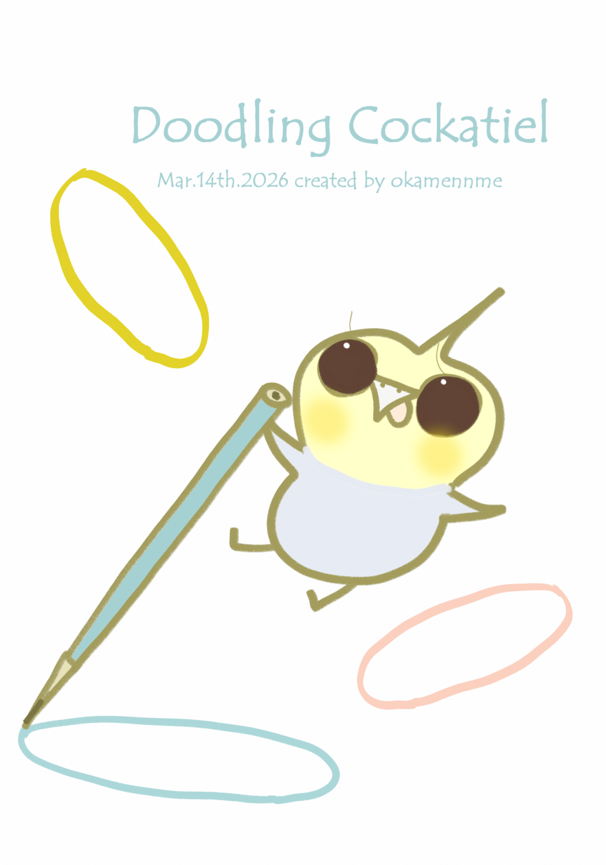The illustration shows a normal cockatiel doodling little circles here and there.