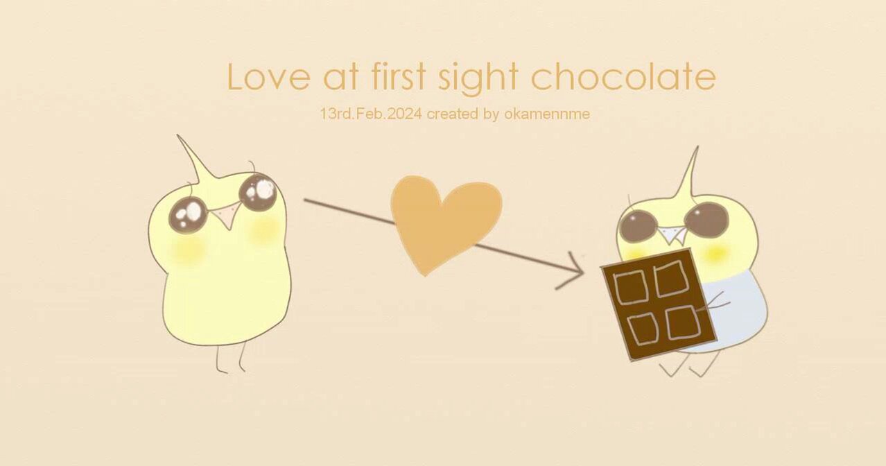 深夜の2時間DTMに参加した時のイラストです。お題は「一目惚れをイメージした曲」です。イラストはお目目輝かせて一目惚れをしたオカメさんです「わお❣なんて美味しそうな板チョコ…‼このブラック具合がたまら