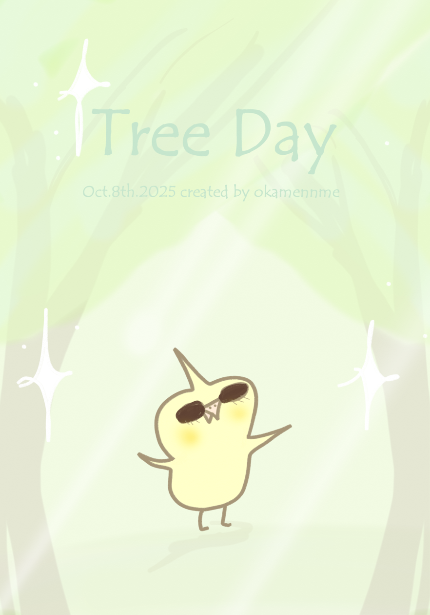 10/8は、日付を漢字にして合体させると「木」になることから、木の日だそうですイラストは、森林浴としゃれこむオカメさんです「ふう~空気がおいしいねぇ。。ま、実はこの森、木が3本しか無いんだけど🌳」もは