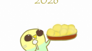 The illustration features a striped parakeet fully enjoying the New Year mood.It looks like they’re holding a big pile o...