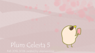 プラムチェレスタシリーズその5コンセプトは、2月が見頃の梅を思わせる鍵盤曲ですイラストは、梅の花を激写するピンクのインコさんですまずは写真におさめてお花見を楽しみにしているようですチェレスタとシンセで穏やかな梅の花をイメージして作りました良...