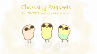 らくがき 輪唱インコ 深夜の2時間dtmお題:輪唱(っぽいもの)を用いた曲イラストは、集まって歌声を重ねるセキセイインコさんたちです穏やかな秋の空の下、心も歌も伸びやかになりますねオルゴールとストリングスとクワイヤを使い、秋の小さな輪唱風bgmですよかったら、聴... 2025.10.07 らくがき音楽素材